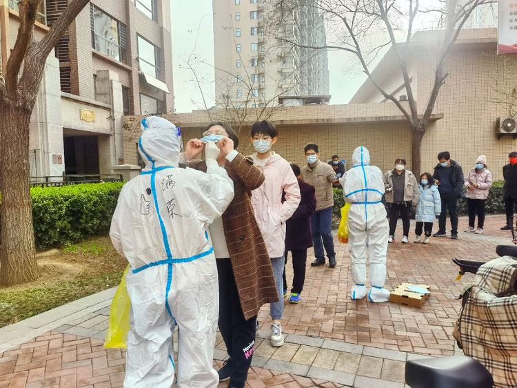 疫情初期每天都是入戶檢測(cè),32層樓,共計(jì)200多人的檢測(cè)耗時(shí)接近一天。每天除了爬樓和不能坐的辛苦外,為了節(jié)省隔離服,大家都是不吃不喝不上廁所,天氣熱的時(shí)候全身濕透,天氣冷的時(shí)候凍的手都沒有知覺,雖然很辛苦,但大家依然在堅(jiān)守。